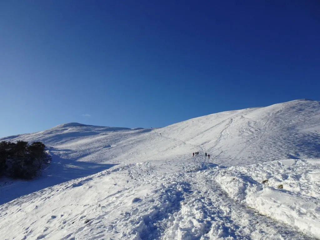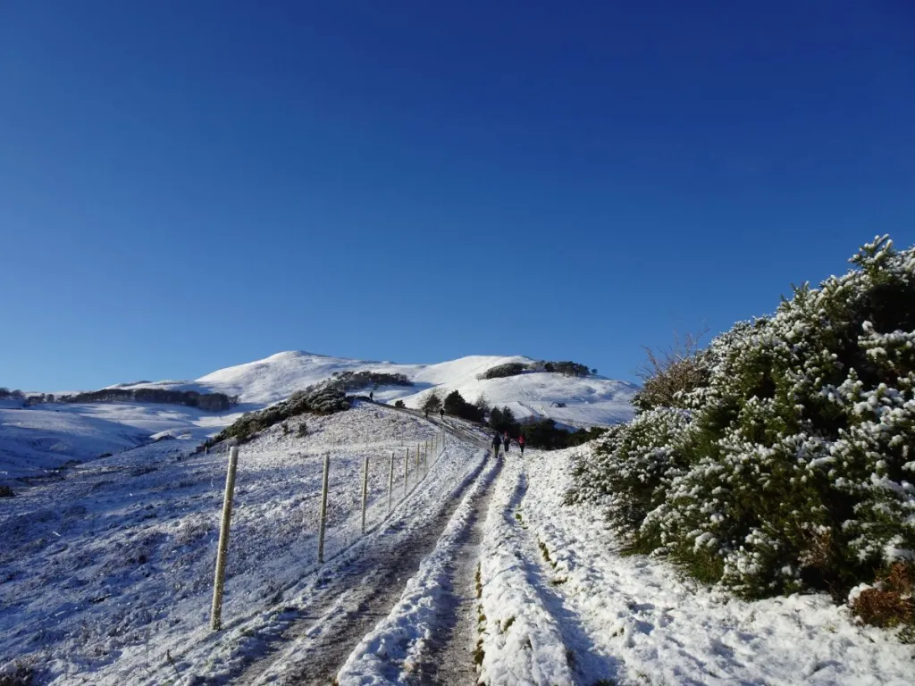 You can, therefore, imagine my delight when the Pentland Hills Regional Park, just to the south of Edinburgh, offered up a blanket of snow and bright blue skies one day in early January. Here was something our car could cope with – and whilst micro-spikes or crampons would have made some sections easier, it was perfectly do-able without either of these.