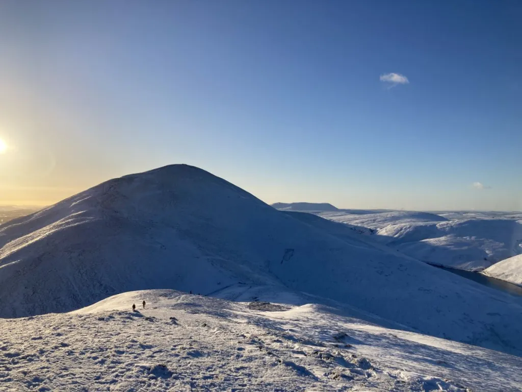 We didn’t linger long at the summit, mindful that we had gone further than planned and needed to allow enough time to make it back off the hills before the daylight faded.